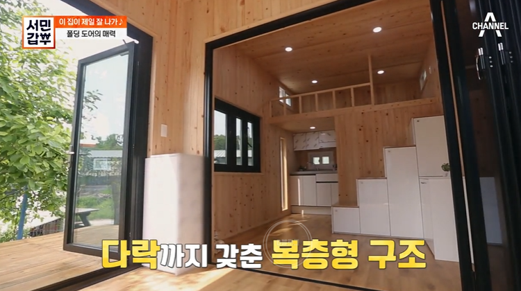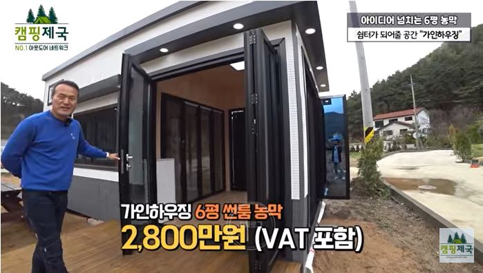 저렇게 폴딩도어가 달린 이동식 주택 가격은 2800만원이래요. 부가세 포함이고 폴딩도어, 수납장 모든 게 포함된 가격이에요.