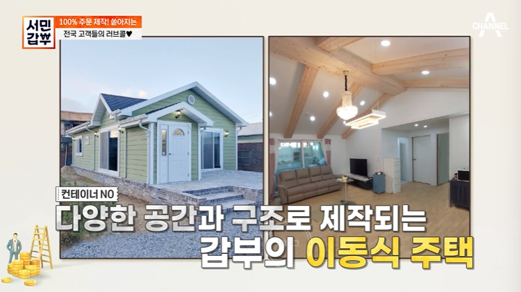 '서민갑부' 이동식 주택 갑부가 등장했어요. 갑부의 공장은 충남 천안에 위치하고 있는데요. 사람들의 로망인 전원주택이나 세컨드 하우스에서 전원생활하는 꿈을 이루어 준대요. 멋진 목조 주택을 만드는 게 갑부의 비즈니스! 갑부의 공장에서 마음에 드는 샘플 주택을 선택하면 집을 지어 배달까지 해준대요.