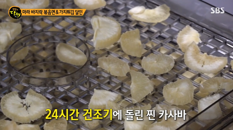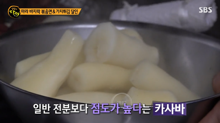 이날 튀김 반죽의 비법이 대공개됐어요. 바로 카사바를 사용한 것. 카사바는 열대성 뿌리식물로 점도가 굉장히 높아요. 공차 밀크티에 들어가는 검은 펄도 카사바가 원재료래요. 쪄낸 카사바를 잘게 썰고 24시간 건조기에 건조하기. 그리고 분쇄기에 넣고 가루를 만들어요.