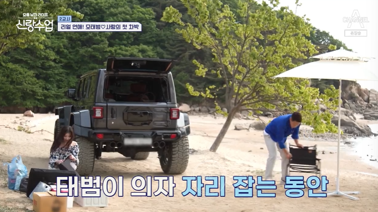 '요즘남자라이프 신랑수업' 모태범이 소개팅녀 임사랑과 실미도 차박 여행을 떠났어요. 차박 명당으로 유명하다고 하는데요. 직접 찾은 장소래요. 바다 뷰를 실컷 감상할 수 있어 좋겠어요! 함께 차박 준비를 하며 알콩달콩한 두 사람. 모태범은 알전구까지 준비하는 세심함을 보였어요.