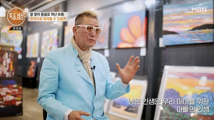 작업실 한 쪽에는 마지막 부인 사이에서 낳은 딸 미미의 사진이 걸려있었어요. 이혼 후 전부인은 딸과 몽골로 돌아갔대요. 전부인과의 나이 차이가 무려 33살이네요. 매일 밤 딸과 영상통화를 하는데, 코로나로 딸을 못 본 지 벌써 3년이래요. 딸 미미의 생활비와 학비를 책임지고 있대요.