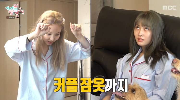 나연과 모모는 함께 살고 있대요. 두 사람의 라이프 스타일이 비슷하다고 하네요. 잠옷도 각자 샀는데 스타일이 완전 비슷한!