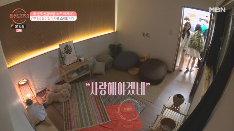여자 방, 남자방 나뉘어 있고 사랑방도 따로 있어요. 이전 시즌보다 장소가 더 넓어졌네요.