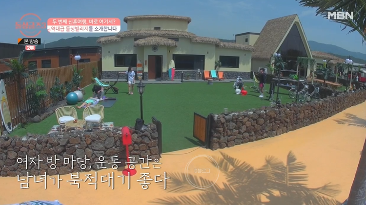 여자 방 마당에는 운동기구도 있네요. 남자 출연자들, 여자 출연자들 어떻게든 자주 마주치게 하려고 아주 설계가 잘됐어요!