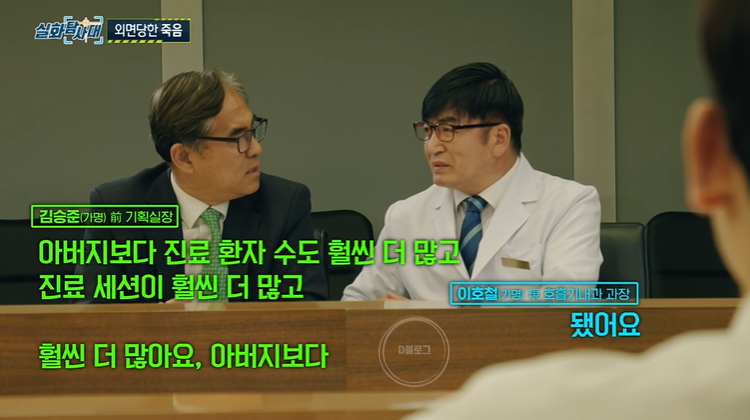 병원에서 갈등이 시작된 건 2010년 이후였어요. 그 전에는 호흡기내과 교수들이 병원 내 가장 분위기 좋은 과였다고 하네요. 고원중 교수 아내는 "제일 친했던 사람이 자기한테 이렇게 비수를 꽂을 줄 몰랐었다"라고 했어요.