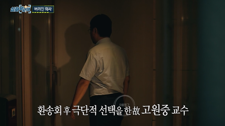 하지만 전 병원 호흡기내과 주최로 열린 환송회에서 고원중 교수는 무너지고 말아요. 고원중 교수는 원치 않는 자리였지만, 자신이 안 나가면 건방지게 안 나왔다는 소리를 듣기 싫어 나가게 됐대요. 그렇게 약속시간인 오후 6시 30분 후배 의사와 약속 장소에 도착했지만, 식당 안은 텅텅 비어있었다고..