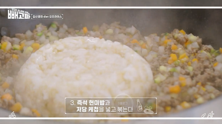 3. 즉석 현미밥과 저당 케첩 넣고 볶기
