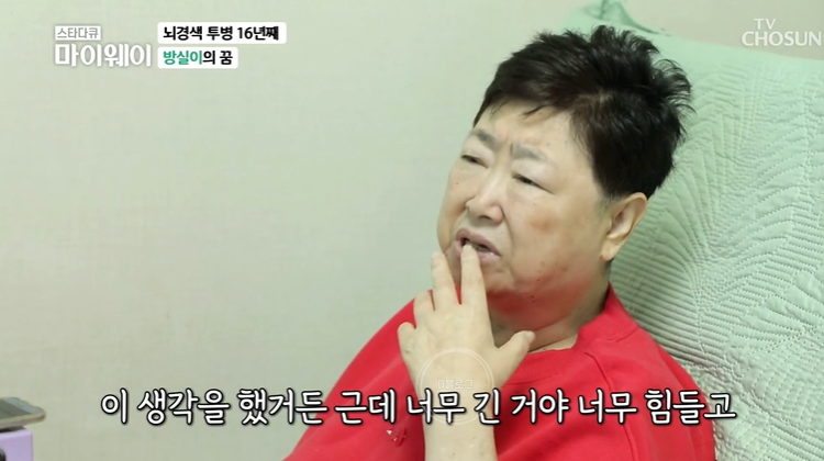 '스타다큐 마이웨이'를 통해 가수 방실이의 근황이 전해졌어요. 방실이는 지난 2007년 뇌경색으로 쓰러진 바 있는데요. 당시 그는 뇌 중요 부위가 손상돼 의식불명 상태로 인공호흡기에 연명했어요. 그리고 16년째 뇌경색 투병 중에 있죠.