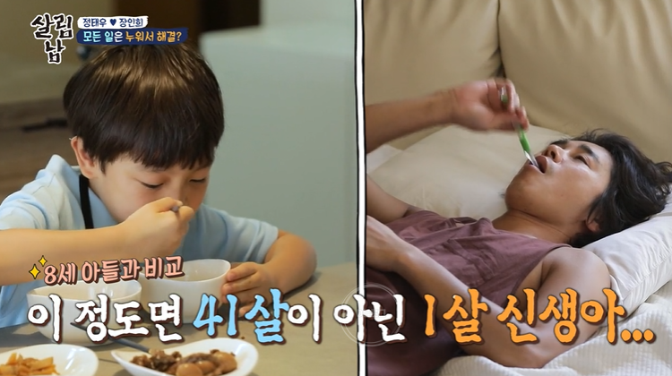 그런데 아침잠 많은 정태우.. 아이들 등교 준비부터 통학까지 모두 엄마 몫이네요. 정태우가 아역배우다 보니 기본적인 은행업무부터 다 할 줄 모른대요. 그래서 아내가 다 케어하는 편이라고. 고기도 잘라주고 손도 닦아주고 반찬도 올려주고 아들보다 더 손이 많이 가네요ㅋㅋㅋ