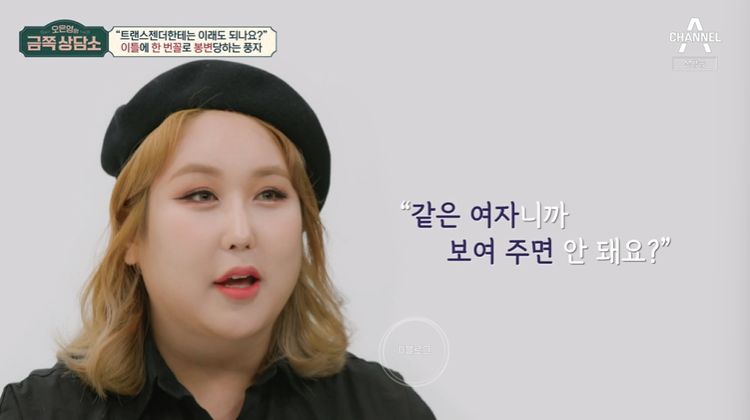 질문을 받자마자 풍자는 열이 받는다며 인상을 찌푸렸어요. 어느날 화장실에서 여성 취객을 마주쳤는데 변기 칸으로 자신을 끌어당겼대요. 그러면서 '같은 여자니까 서로 보여 주면 안 돼요?'라고 했다네요. 가슴도 만졌다고. 신체 모양이나 기능에 대해 서슴없이 질문하는 사람들도 많았대요. 악플은 기본이고 트젠이라 집주인이 일방적으로 집 계약을 파기하기도 했대요.