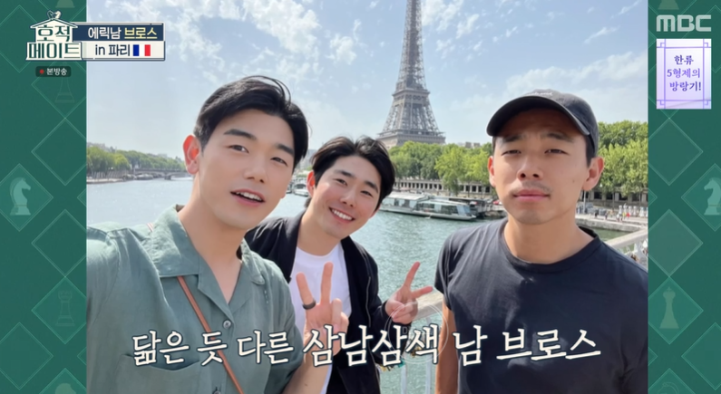 '호적메이트'에 에릭남이 두 동생과 함께 출연했어요. 현재 에릭남은 월드투어 중이라고 하는데요. 두 동생과 파리에서 만났어요.