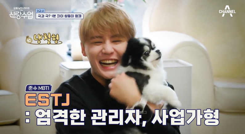 두 사람이 MBTI가 완전 반대래요. 준수는 ESTJ 엄격한 관리자 사업가형이고, 형은 ENFP 재기발랄한 활동가 스파크형이래요. 성향이 반대네요.