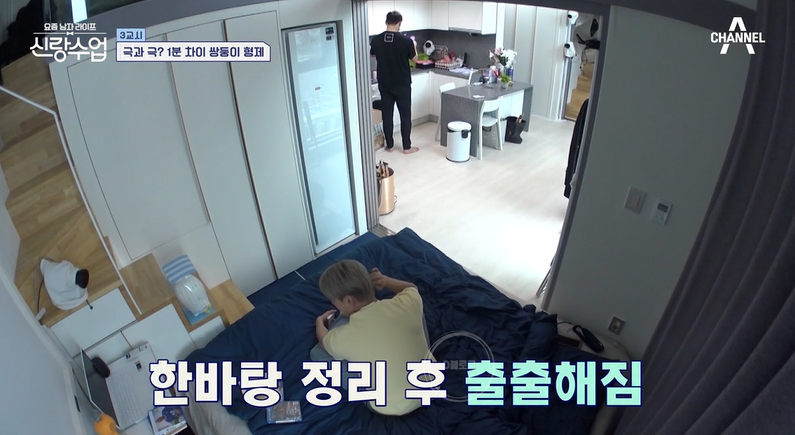 때문에 준수는 집에 먼지 하나 없이 깨끗한데, 형 집은 정리정돈이 잘 안 되어 있네요. 결국 준수가 집 청소를 다해줬네요. 쌍둥이도 이렇게 다르네요.