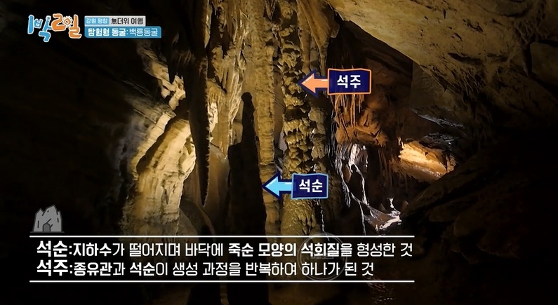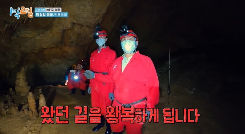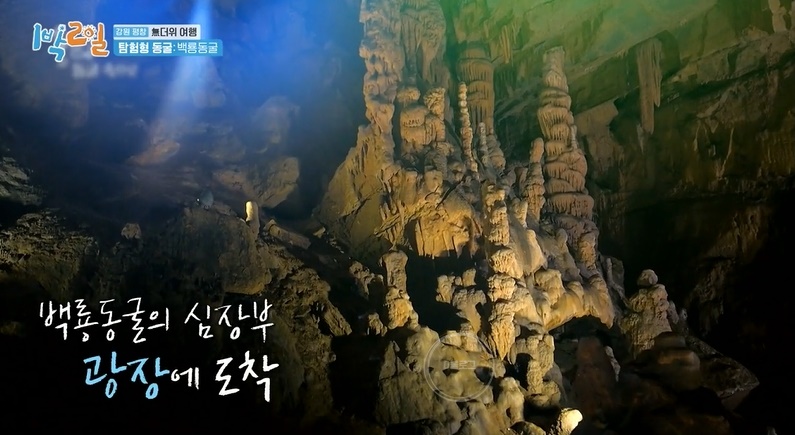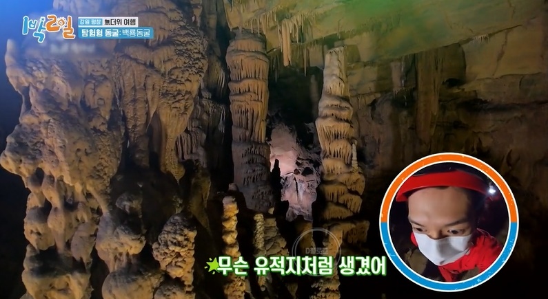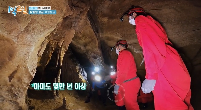 '1박 2일 시즌4' 강원도 평창 편이 전해졌어요. 문세윤과 나인우는 평창 대표 여행지 백룡동굴을 찾았는데요. 탐험형 동굴이라 장비를 갖추고 들어가야 해요. 원시 그대로를 보존, 국내 최초 생태학습형 체험동굴로 개방해 우수한 경관을 직접 탐험하고 전문 가이드의 설명도 들을 수 있어요.