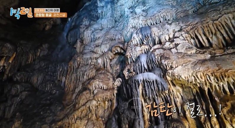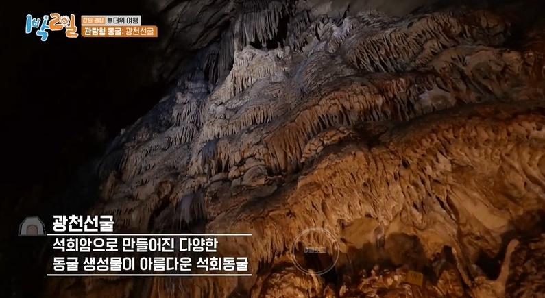 '1박 2일 시즌4' 평창 편으로 관람형 동굴 광천선굴 어드벤처테마파크가 전해졌어요. 광천선굴은 신선들이 살았다고 전해져 올 만큼 신비로운 모습을 지닌 동굴이에요. 석회암으로 만들어진 다양한 동굴 생성물이 아름다운 천연 석회동굴!