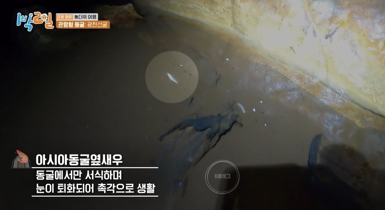 휴석소라고 불리는 곳이 신비스럽더라고요. 다랑이 논 형태인데 지하수가 고여 있는 동굴 생성물이에요. 안에는 아시아동굴옆새우가 산대요! 눈이 퇴화되어 촉각으로 생활하는데 먹이가 적은 동굴에서 사느라 에너지 소비를 줄여 수명이 긴 편이래요. 신기신기.
