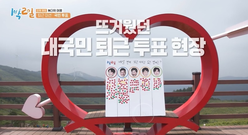 여행객들이 퇴근시키고 싶은 멤버 꼽았는데 압도적으로 김종민이 1위네요 ㅋㅋㅋ 2위는 연정훈!
