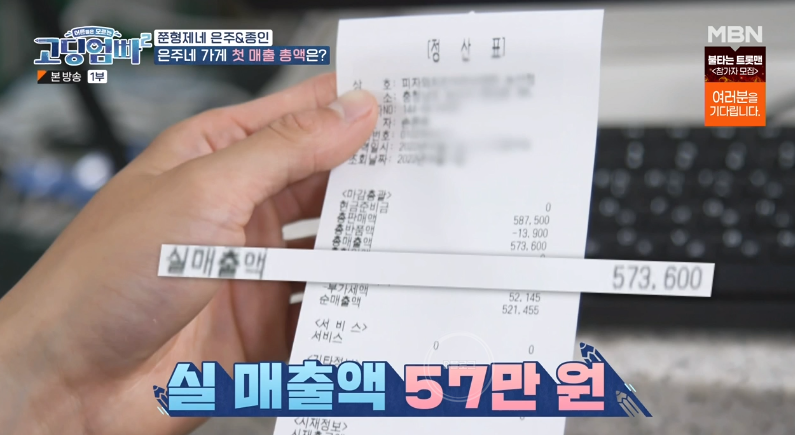 오늘 첫 매출은 57만원! 문종인 전 직업은 배달 직이었는데 월급이 230~250만 원이었어요. 열심히 하면 전 월급을 뛰어넘을 수도 있겠어요!