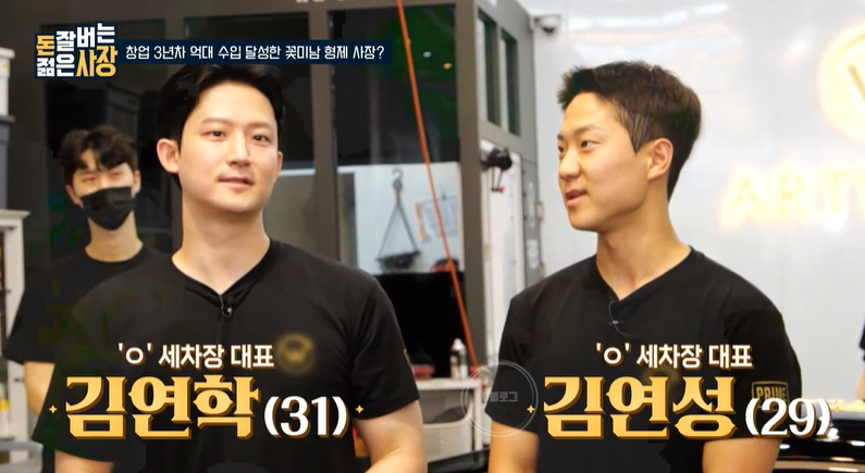 '돈 잘 버는 젊은 사장' 세차장 편! 창업 3년 차에 억대 수입을 달성한 꽃미남 형제 사장이 있다? 세상 힙한 인테리어의 세차장이 눈길을 끌더라고요. 형제 사장님 김연학 나이 31세, 동생 김연성 나이 29세! 맘 카페에 형이 잘생겼다고 소문나면서 한동안 맘 손님들이 줄을 이었대요! 정말 그럴 정도로 훈남이시네요!