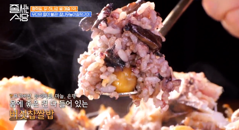 '줄 서는 식당' 신당역 맛집이 전해졌어요. 표고버섯, 능이버섯, 마늘, 은행 등 몸에 좋은 건 다 넣은 버섯찹쌀밥이 들어간 참나무능이장작구이가 대표 메뉴인데요.