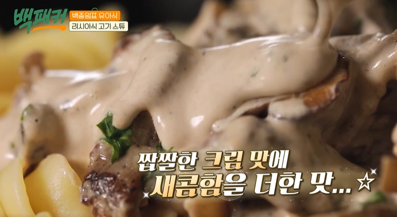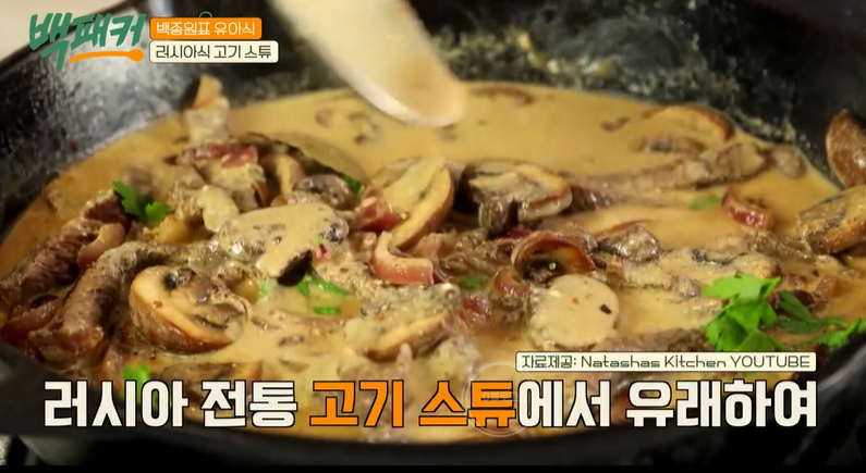 고기 스튜 본명은 '비프 스트로가노프'. 러시아 전통 고기 스튜에서 유래, 크림 파스타 소스와 비슷하지만 사워크림을 넣어 새콤한 맛이 나는 게 큰 차이. 짭짤한 크림 맛에 새콤함을 더한 맛.