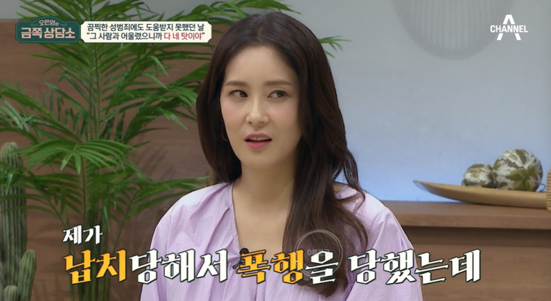 심지어 19살에 납치 당해서 폭행을 당한 적도 있대요. 아는 사람에게 당했는데 이를 아버지께 말했더니 '으이구'라는 말밖에 없으셨대요. 밤에 4~5시간 갇혀 있다 우유 배달하는 분의 오토바이를 타고 도망쳤다고.