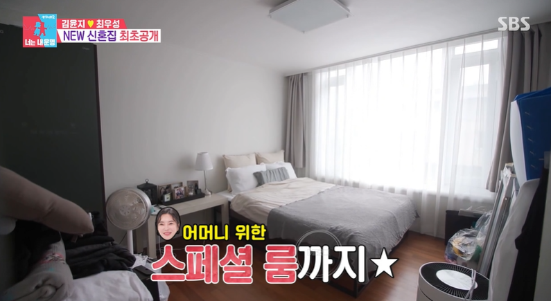 다른 방은 반으로 나눠 운동방과 옷방으로 꾸몄네요. 김윤지 친엄마를 위한 스페셜 룸까지 마련됐어요. 아버지가 돌아가시고 어머니 혼자 사시는데 이를 배려한 것 같아요.