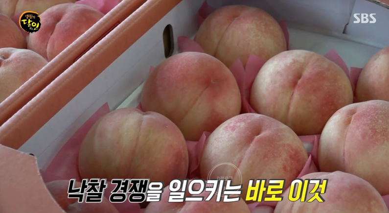 달인의 과수원은 5천평 정도로 품종이 수십 가지라 수확 시기가 다 다르대요. 하지만 달인은 딱 보면 안다고! 황도이든 백도이든 붉으면서 노란 복숭아가 최상의 맛을 낸대요.