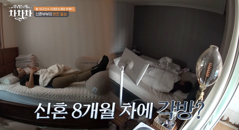 두 사람의 신혼집도 공개됐네요. 그런데 신혼 8개월 차에 각방 쓰는 두 사람. 각 방 쓰는 이유를 물으니 트루디가 안방 침대를 불편해해서래요.