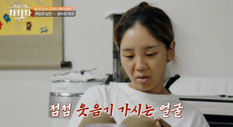 트루디는 현재 많이 지친 상태래요. 아무래도 결혼생활 모든 걸 혼자 하려니 힘들 것 같긴 해요. 강아지 혼자 산책시키다 결국 눈물 보이는 트루디.. 트루디는 함께 뭔가를 했으면 좋겠는데 이대은은 게임만 하니.. 많이 답답할 거 같아요.