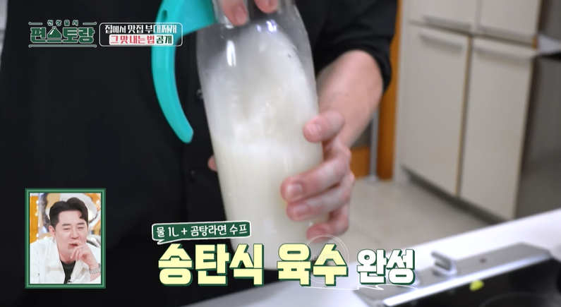 7. 사리곰탕 라면 수프+물 1L 섞어 육수 준비