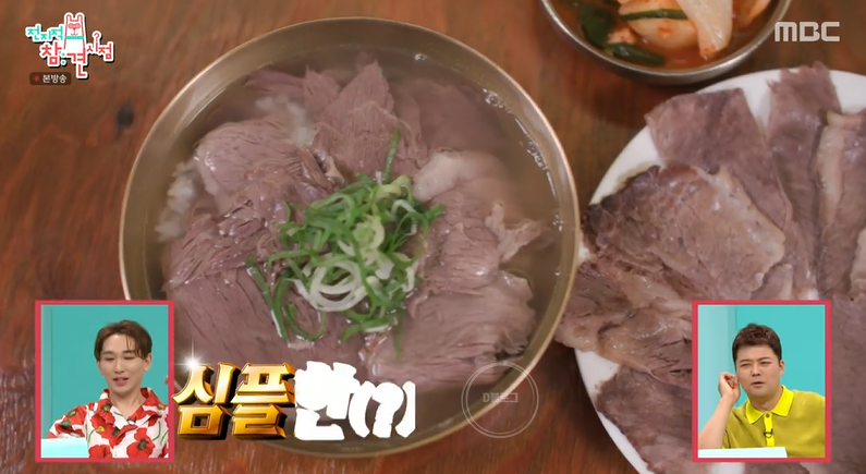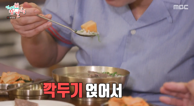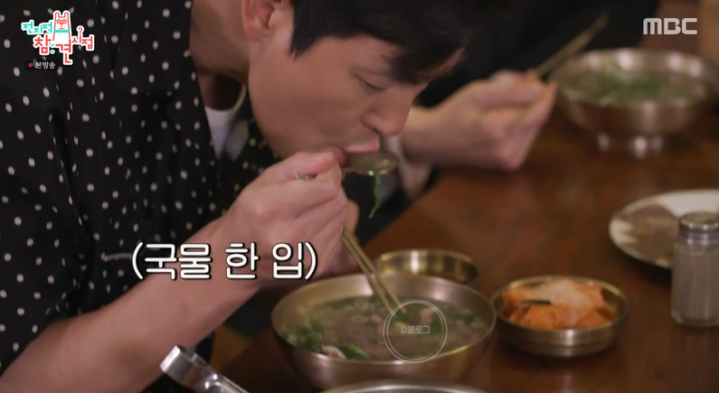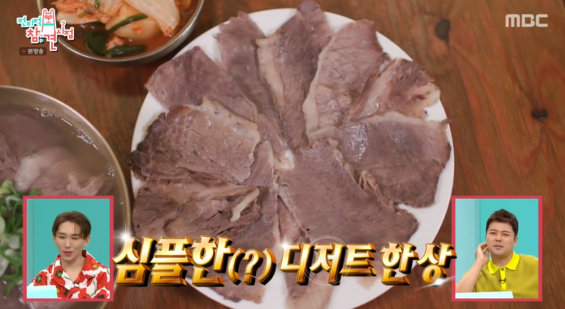 그리고 심플한 디저트로 등장한 곰탕과 수육! 전현무도 아는 맛집인가봐요. 깍두기 하나 얹어서 먹방 시작하는 이영자. 완전 침샘 자극이에요!