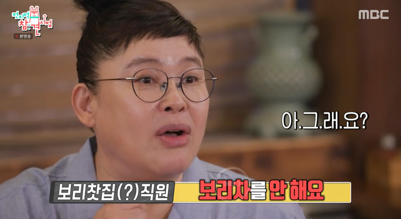 '전지적 참견 시점'에 이영자 맛집이 공개됐어요. 보리차 맛집이라며 정우성, 이정재를 끌고 갔는데요. 이미 식사를 한 뒤라 또 식당으로 오니 어리둥절한 정우성, 이정재ㅋㅋㅋ 그런데 이영자는 우리나라 보리차를 직접 볶아서 끓인다며 진땀ㅋㅋ 하지만 요즘 보리 상태가 안 좋아서 보리차가 안 나온대요 ㅜㅜㅜ 절망한 이영자..는 페이크 빠른 태세 전환으로 수육 시키는 이영자 ㅋㅋㅋ