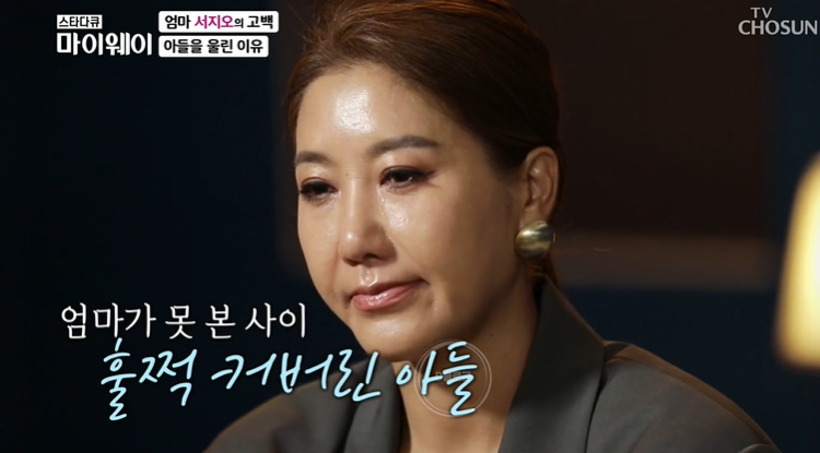 아들이 중학교 때 서지오는 처음 이혼에 대해 이야기했대요. "그때까지는 아빠하고 엄마하고 헤어졌어, 그 얘기는 안 했어요. 그냥 아빠가 해외에 계신다고 얘기했어요. 한동안 몇 분 말이 없더라고요. 그냥 눈물 뚝뚝 흘리더라고요. 그러더니 저한테 '엄마 고생했어. 이제부터는 내가 잘할게' 그러더라고요. 담담하게 부모의 이혼을 받아줬고 오히려 엄마를 더 토닥여주더라고요"