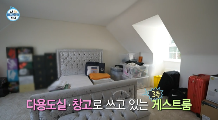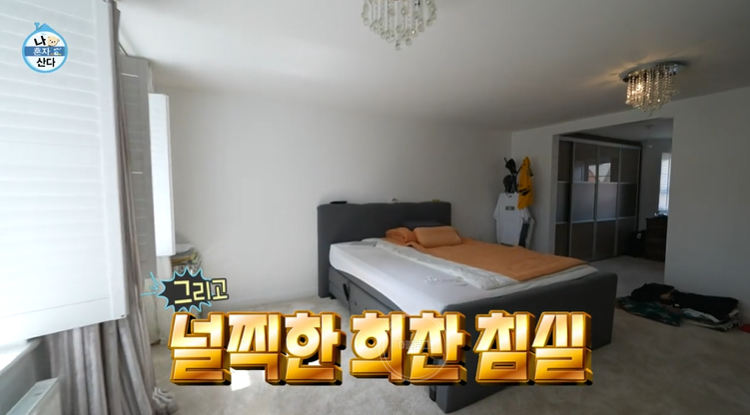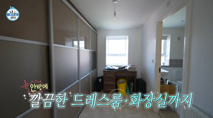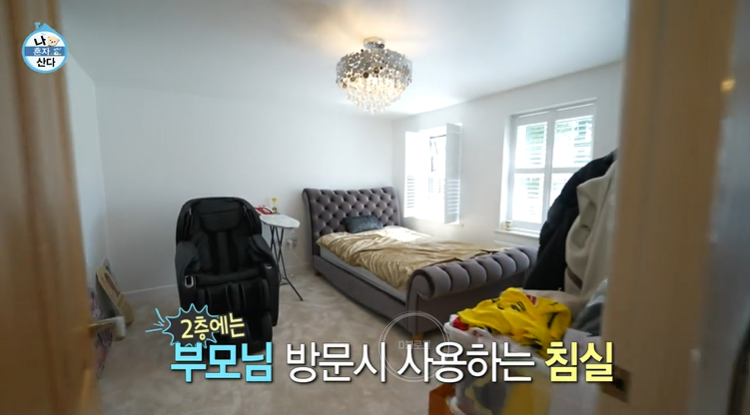 거실에서 나오면 다시 현관인데 여기서 2층 계단으로 올라가면 부모님이 방문하면 사용하는 침실과 황희찬 침실이 있어요. 안방 침실에는 드레스룸과 화장실이 함께 있네요. 미니멀하면서도 정말 깔끔해요.