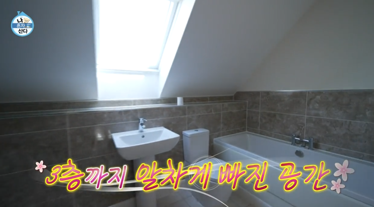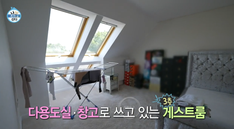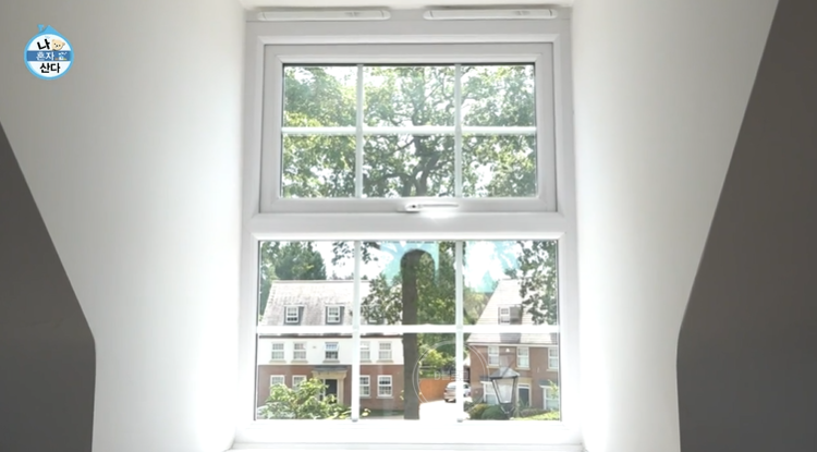 3층에는 욕조있는 화장실과 다용도실, 창고로 쓰는 게스트룸이 위치하고 있어요. 창문에서 보이는 바깥 풍경이 그냥 액자네요.