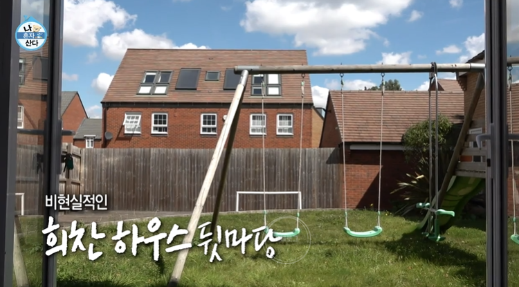 1층 창문을 열면 파란 하늘이 그냥 쏟아질 것 같아요. 뒷마당에는 그네도 있는데 정말 비현실적인 그림이 펼쳐지네요. 그냥 너무 예쁘다는 말밖에..