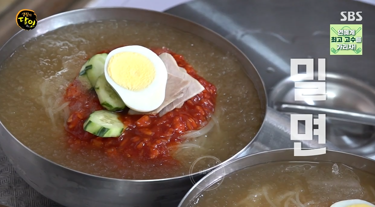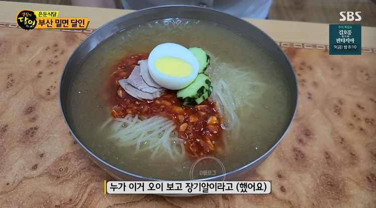 '생활의 달인' 부산 밀면 달인이 등장했어요. 특이한 게 간판은 기사 식당인데 밀면 전문이더라고요. 밀면이란 밀가루에 전분을 넣어 반죽한 면에 육수와 수육까지 돼지고기로 만든, 일종의 부산식 냉면을 말해요. 제작진조차 찾기도, 취재하기는 더 힘들었던 부산 밀면의 숨은 성지라고 하네요. 잠행단 장다영도 깊게 반했더라고요.