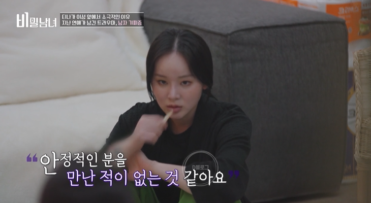 '비밀남녀' 티나의 비밀이 공개됐어요. 비밀 키워드는 바로 남자기피증. 의외의 비밀이라 너무 놀랐어요.