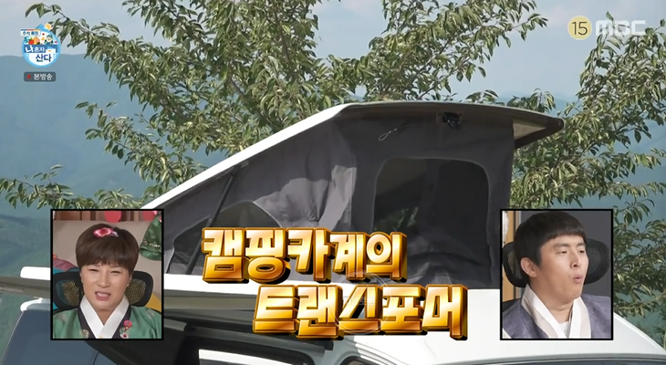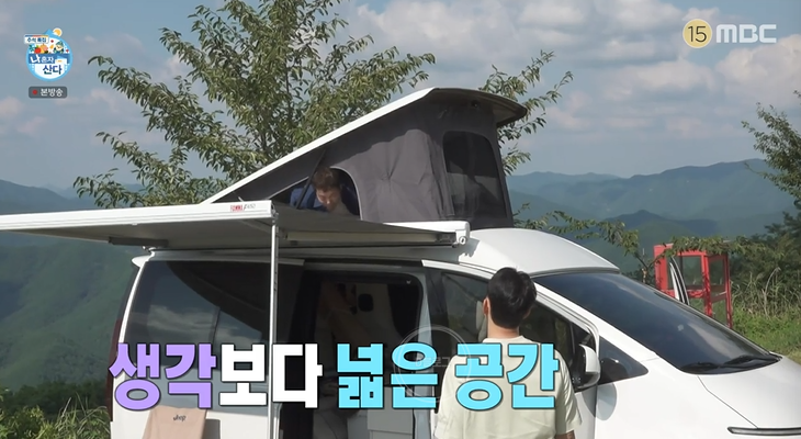 전현무는 차에 어닝도 설치했더라고요. 차박하는 분들이 정말 탐내 하는 거죠. 비올 때 정말 편하더라고요.