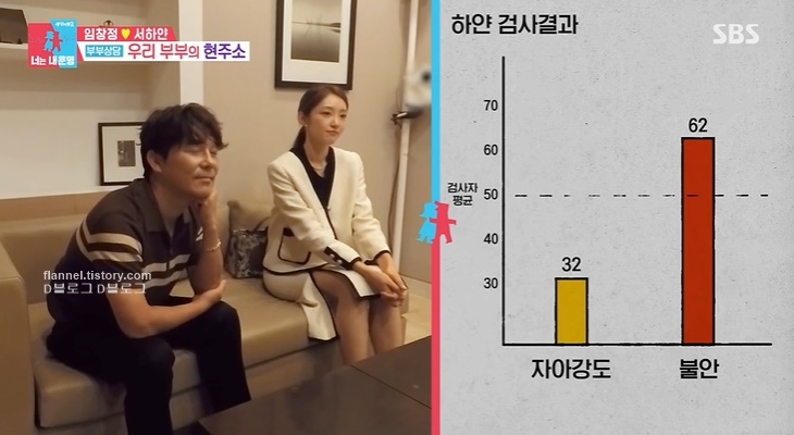 모든 이야기를 들은 전문의는 부부 상담 결과 및 솔루션을 공개했어요. 서하얀 인성검사 결과 자아가 높지 않고 불안도가 높은 편이래요. 그리고 사실 맘 속엔 화가 많은 편이래요. 근데 그 화를 강하게 통제하는 중이라고.