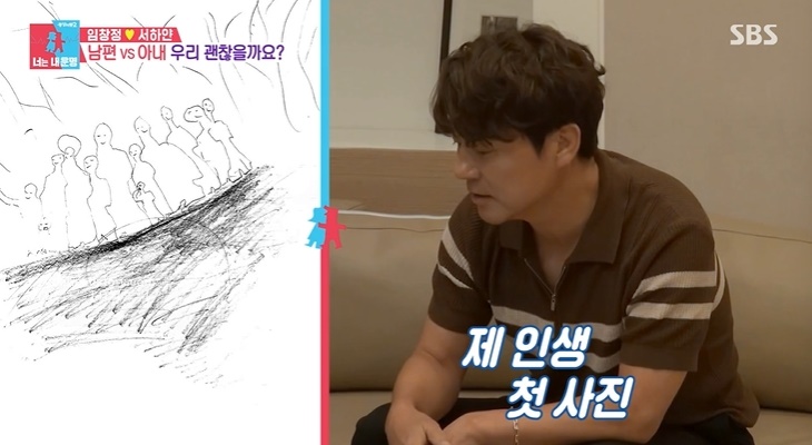 이에 정신과 전문의는 어릴 적 내 기억 속 가족의 모습을 그려달라고 부탁했어요. 그러자 임창정은 제 인생 첫 사진이라며 기억 속 한 장면을 그려냈죠. 가운데 부분에 작은 임창정이 있네요. 해당 그림은 온 친척이 함께 사진 찍은 날을 회상한거예요.
