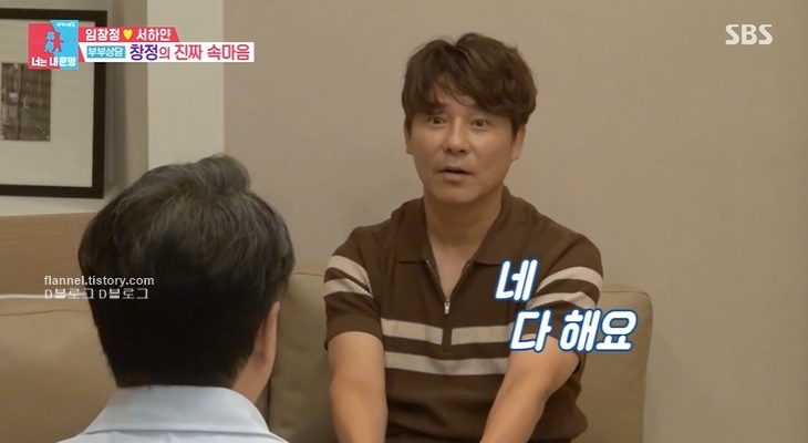 찾아간 이유는 임창정의 경우 "저희는 사이가 참 좋은 편인데 서로 본인의 자아를 참으면서 상대를 위해 희생하다 스트레스를 받고 있진 않을까, 그래서 그게 사이좋다는 허울로 비춰지지 않을까.. 아내가 저를 통제하려고 하는 부분들이 좀 있어요"