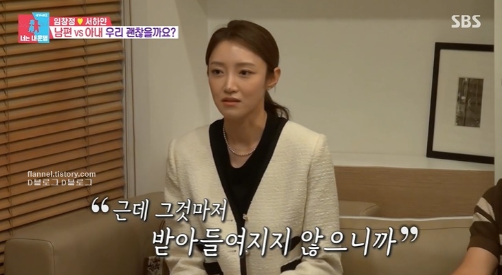 서하얀의 경우 "근데 저는 여러 번 생각하고 남편을 배려한답시고 둘이 있을 때만 얘기하거든요. 근데 그것마저도 화를 내니까.. 오빠 편에서 말을 해주는 건데 그것마저 받아들여지지 않으니까 저도 거기서 바로 눈물이 나온다거나.. 그때 서로 감정적으로 충돌이 있는 거 같아요"