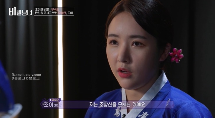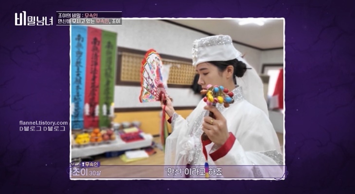 '비밀남녀' 조이의 비밀이 공개됐어요. 반전 비밀은 바로 직업이었는데요. 이전 조이는 자신의 직업을 화장품 MD라고 말한 적 있어요. 사실 진짜 직업은 무속인이었어요. "저는 조상신을 모시는 거예요. 할머니 할아버지 장군님 대감님 동자 동녀 선녀님 '만신'이라고 하죠. 저희 가족 세 분이 무속인이에요. 제가 이제 6개월 정도 된 아기예요"