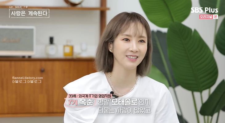 '나는 SOLO, 그후 사랑은 계속된다 나솔사계'에 7기 옥순이 등장했어요. 미모는 여전히 아름다우시더라고요. 방송 이후 정말 모태솔로인지 되묻는 사람들이 많았대요. 아직도 믿기지 않음.. 소개팅은 한번도 들어오지 않아서 아직도 남자친구는 없대요.