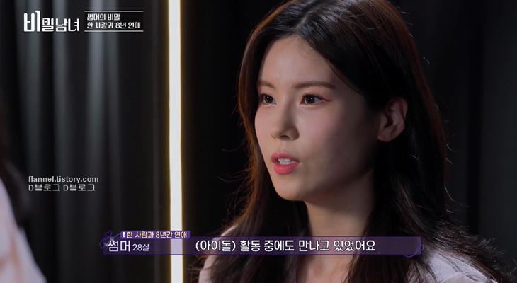 "전 연애가 장기 연애라고 하면 '그 사람 아직 못 잊었겠다' 이렇게 생각할 수도 있을 것 같고, 실제로 저도 그 사람(전 남자친구) 기준에 많이 맞춰진 게 사실이라서.. 20살에 만나서 28살까지 만났어요. 아이돌 활동 중에도 만나고 있었어요"