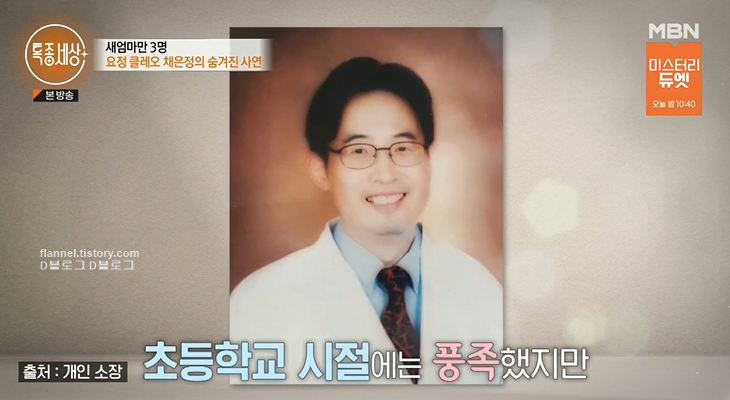 채은정은 성형외과 아버지 덕분에 초등학교 시절 풍족하게 지냈지만 여행 한 번 가본적 없을 정도로 아버지와의 관계는 소홀했대요.