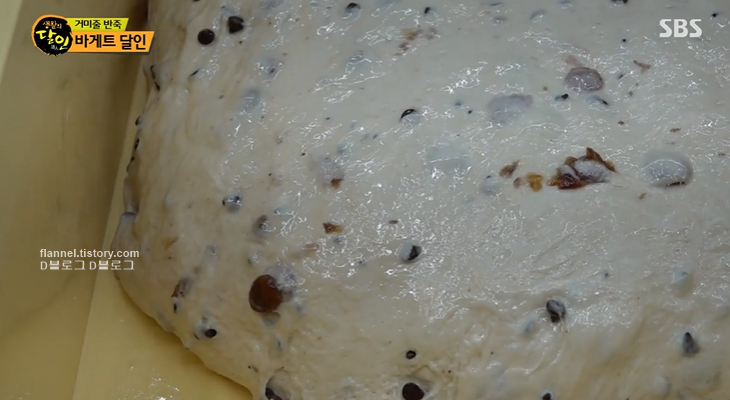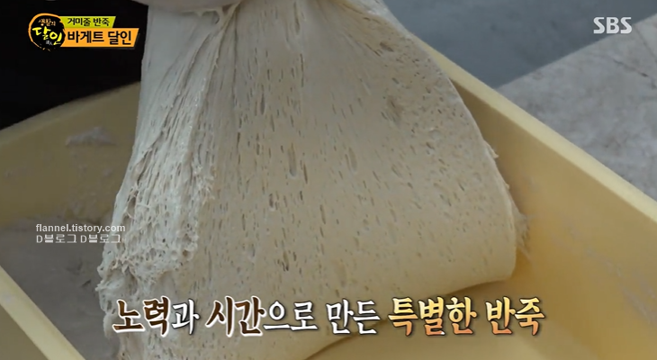 이제 프랑스산 밀가루에 당 발효액을 넣어주면 이것이 이스트 역할을 한대요. 반죽 치대기는 무려 3일 동안 반복된다고 하네요. 엄청난 노력과 시간이 들어가네요.