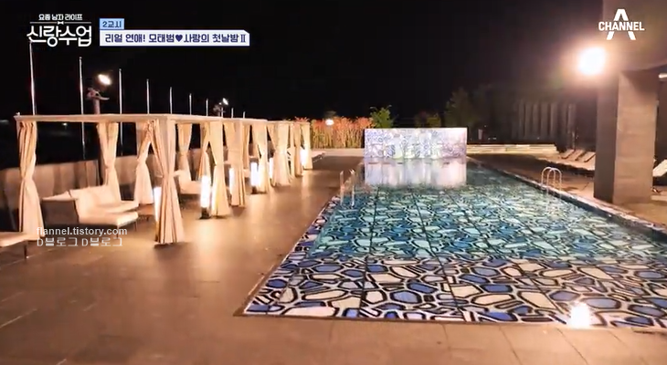'신랑수업' 모태범, 임사랑 커플이 달달한 스킨십으로 화제가 되고 있어요. 두 사람은 정선으로 1박 2일 여행을 떠났는데요. 불 켜진 야외 수영장이 너무 로맨틱하고 예뻤어요.